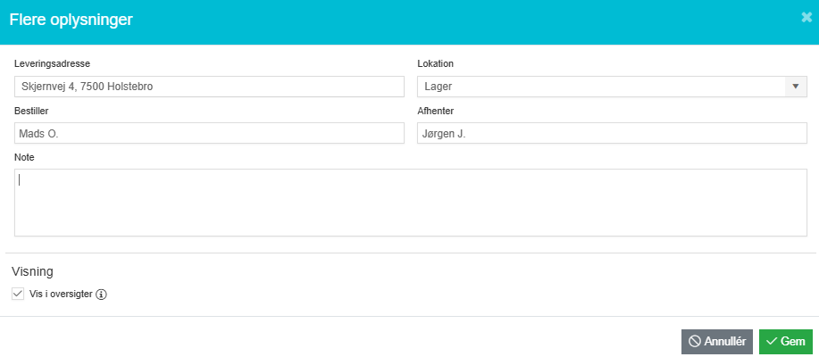 Leveringsinfo og visning